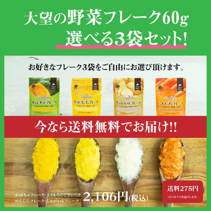お好きな野菜フレーク60gを3袋お選び頂けます!